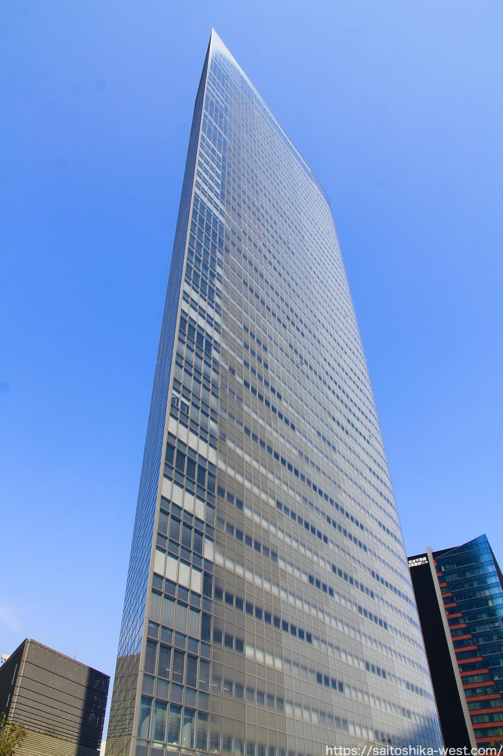 超高層ビル・都市開発研究所の中の人きりぼうくんon X: "売却額が3,000億円規模になる電通本社ビル 、見る角度によって“日本刀”や“エイ”、“ロボットの顔面”に見える面白いビル😙!~地上48階、地下5階建て、高さ213.337m、延床面積231,701㎡の巨大超高層ビルの今後が。