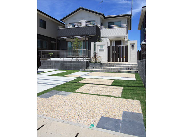 こだわりの玄関アプローチ│セミクローズ外構群馬高崎おしゃれなエクステリア外構・庭リフォームグロウスガーデン。