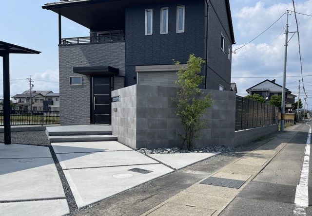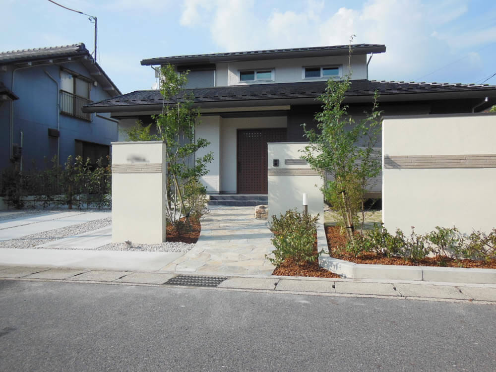 施工例「南面道路の広い敷地 上手に空間を分けたセミクローズ外構」兵庫県姫路市。