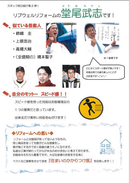 自己紹介シート☆松原市・羽曳野市・藤井寺市・堺市 リフォームするなら、リブウェルリフォームへ☆松原市外壁塗装・増改築のリブウェルリフォームアドバイザー日記。
