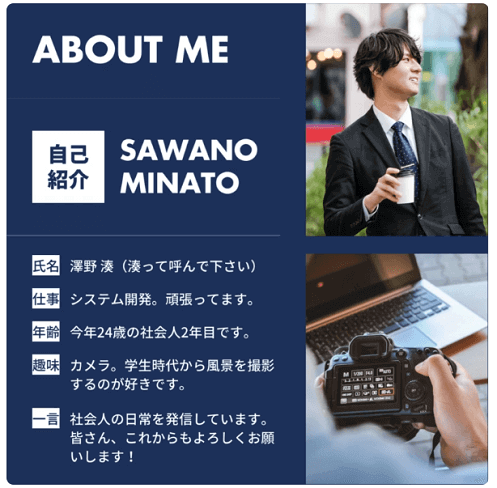 信頼と安心を与える自己紹介シートを製作します 営業に効果大!洗練されたプロのデザインで印象度アップ☆ココナラ。