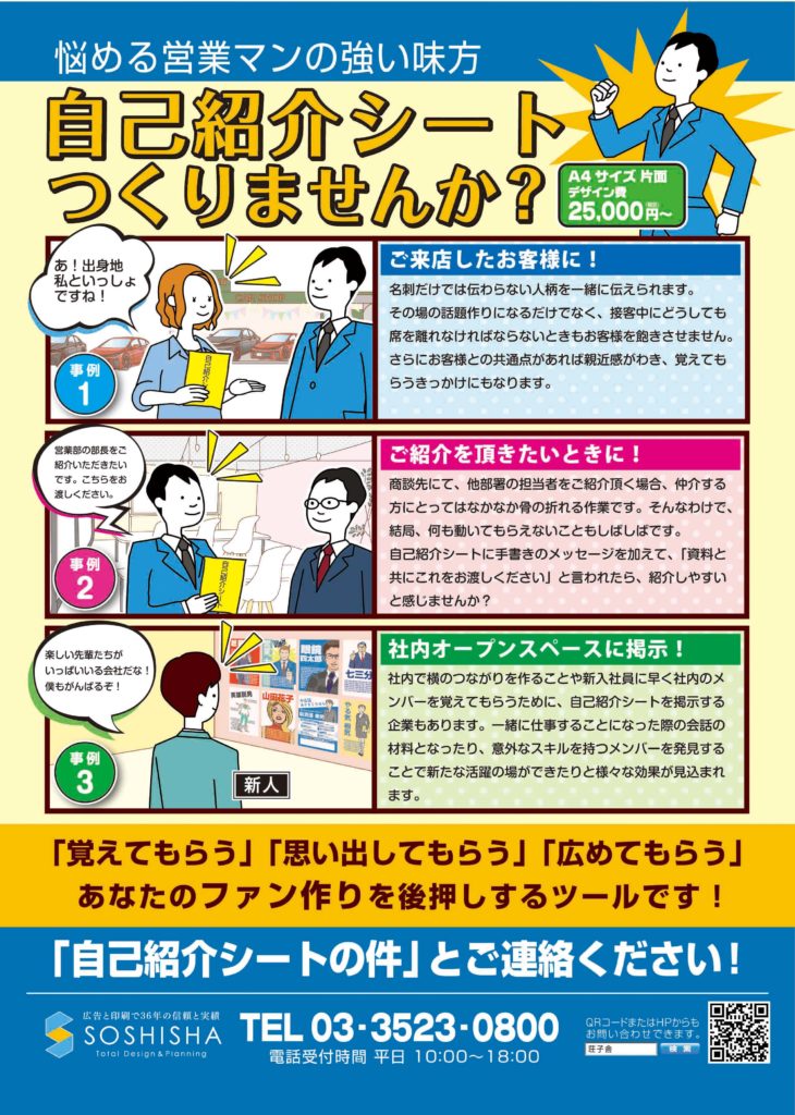 自己紹介シートを作りませんか?トータルデザイン&プランニング 株式会社 荘子舎。