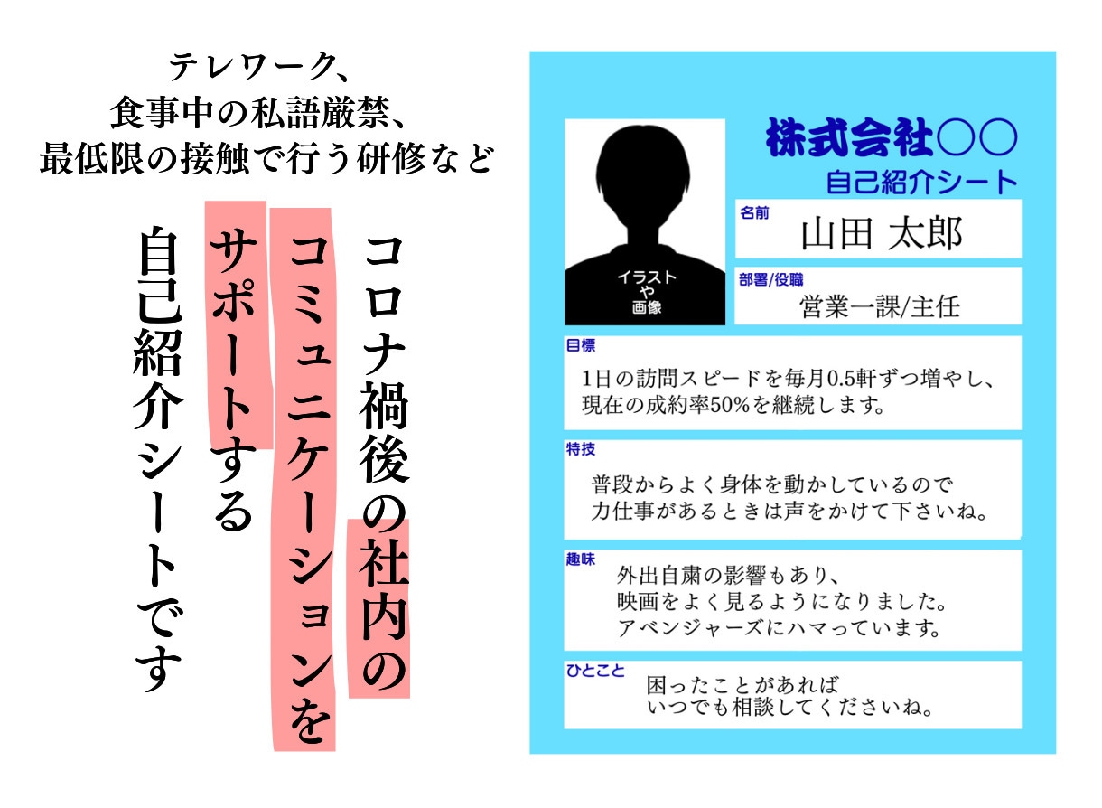 社員同士の会話のきっかけ!自己紹介シート作成します 社員同士に話すきっかけを作る自己紹介シートのテンプレート作成ココナラ。