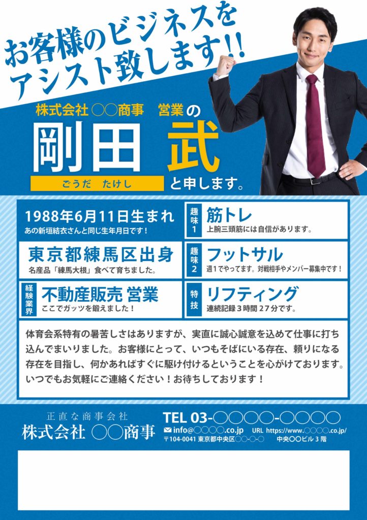 自己紹介カード・A4 プロフィールシートビジネス。