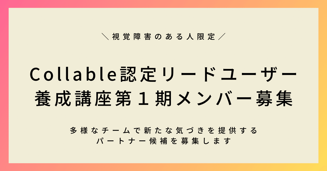 Collable認定リードユーザー養成講座 視覚障害のある方 第1期の募集を行いますCollable。