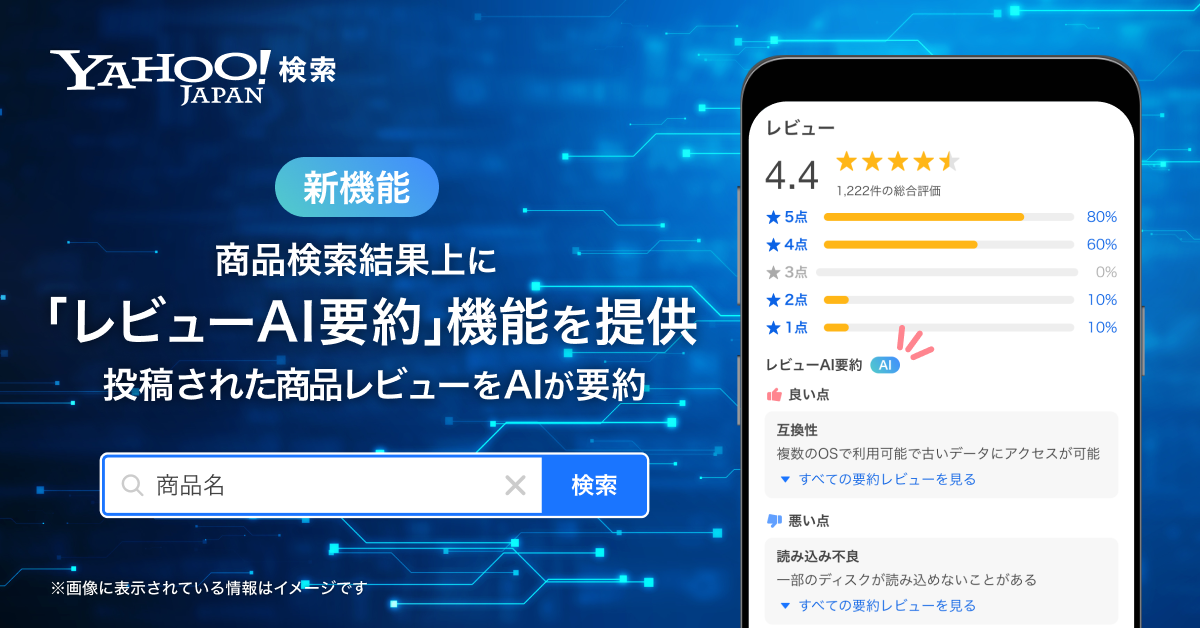 Yahoo!検索、検索結果上の商品レビューを生成AIが要約する「レビューAI要約」機能を提供開始LINEヤフー株式会社。