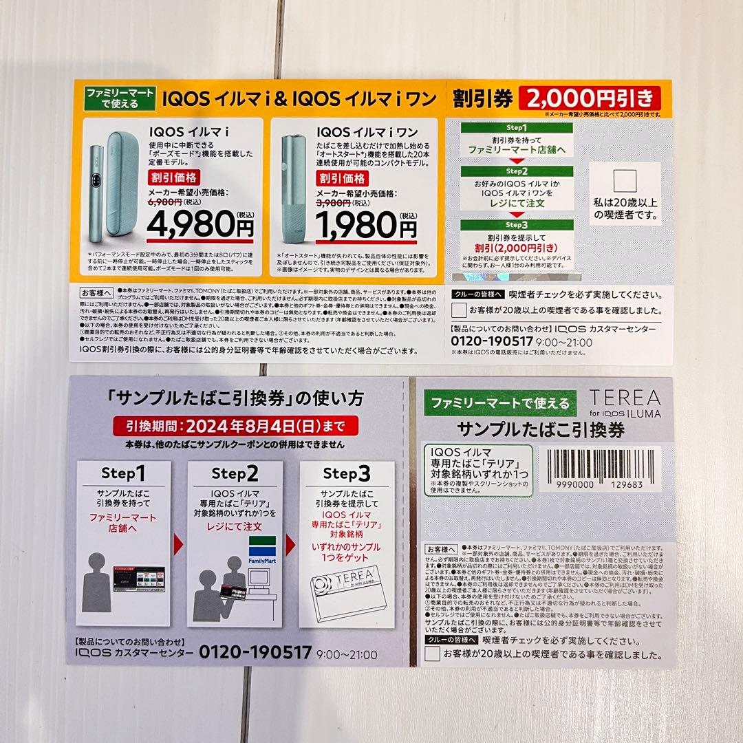 IQOS -ファミマ限定 IQOSイルマi・イルマワンi割引券 サンプルたばこ引換券の通販 by くまちゃん's shopアイコスならラクマ。