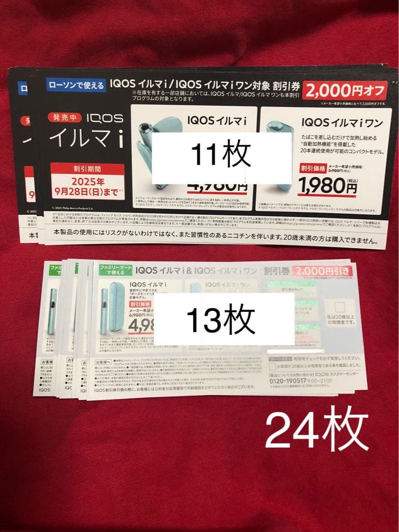 アイコスイルマ&イルマワン2000円割引券ファミリーマート&ローソン30枚。