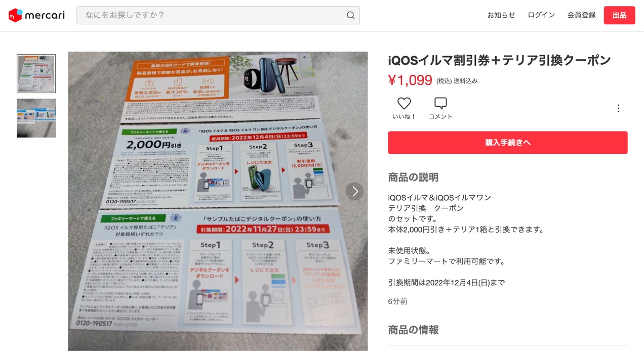 ファミリーマート ファミマ アイコス IQOS クーポン 電子タバコYahoo!フリマ 旧PayPayフリマ。