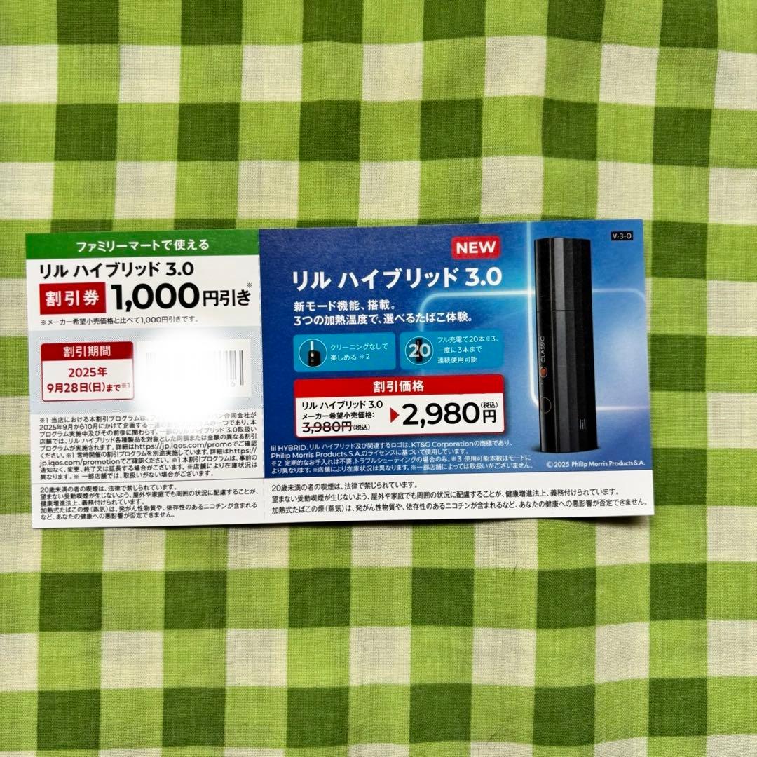 アイコス リルハイブリッド3.0 1000円OFF割引券 ファミマ限定 50枚 9 8~開催。