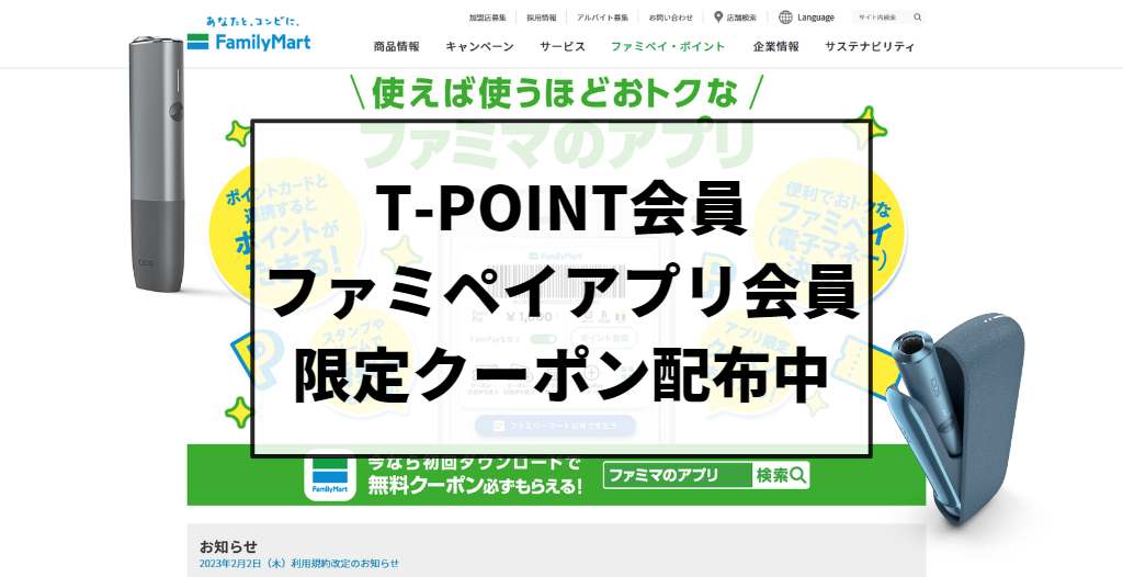 ファミリーマートのIQOS割引キャンペーンは12月10日まで!T会員とファミペイアプリ利用者の方は必見!アイコスさん。