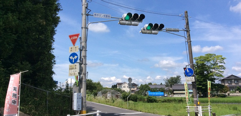 押ボタン式信号機の脇道から出る車両の注意点 香川県。