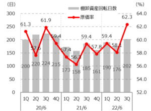 良品計画の営業利益と営業利益率の推移のグラフグラフストックグラフや表が無料で使える。