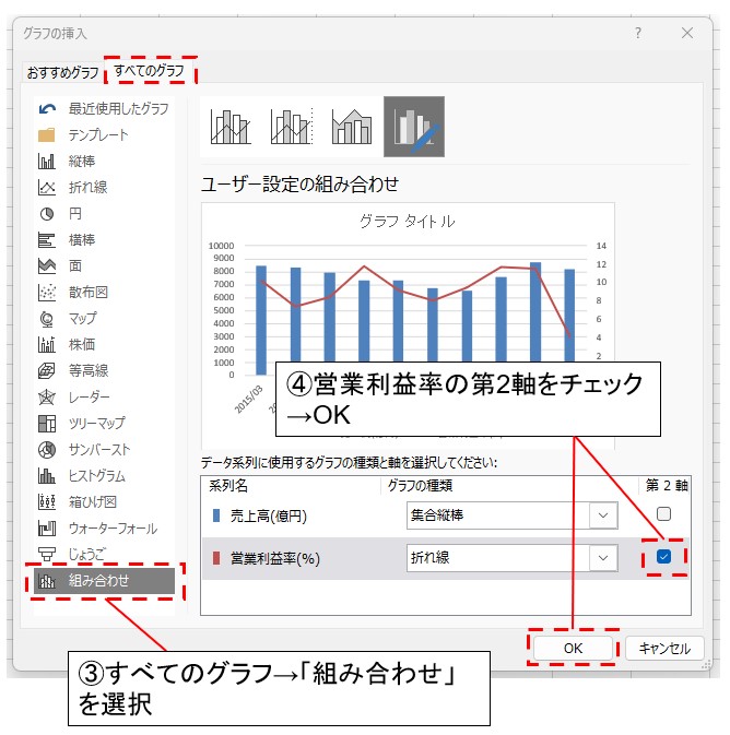 棒グラフと折れ線グラフを一つにまとめた「2軸グラフ」を作ってみよう日経クロステック xTECH。