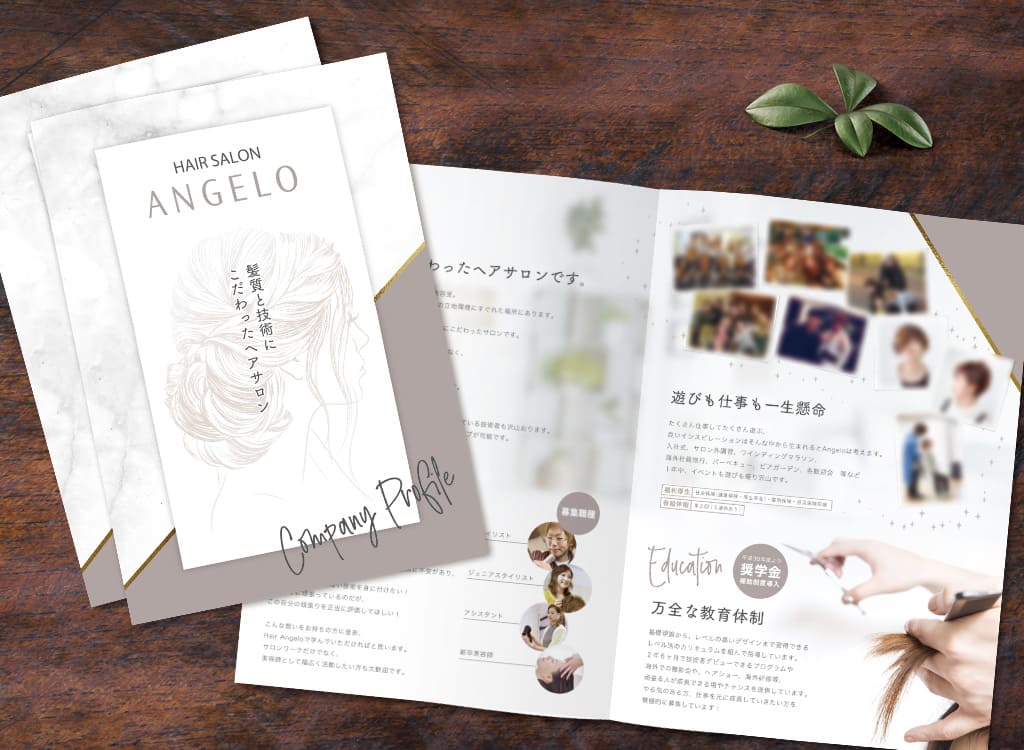 美容室アンジェロ高品質で低価格なパンフレットデザイン。