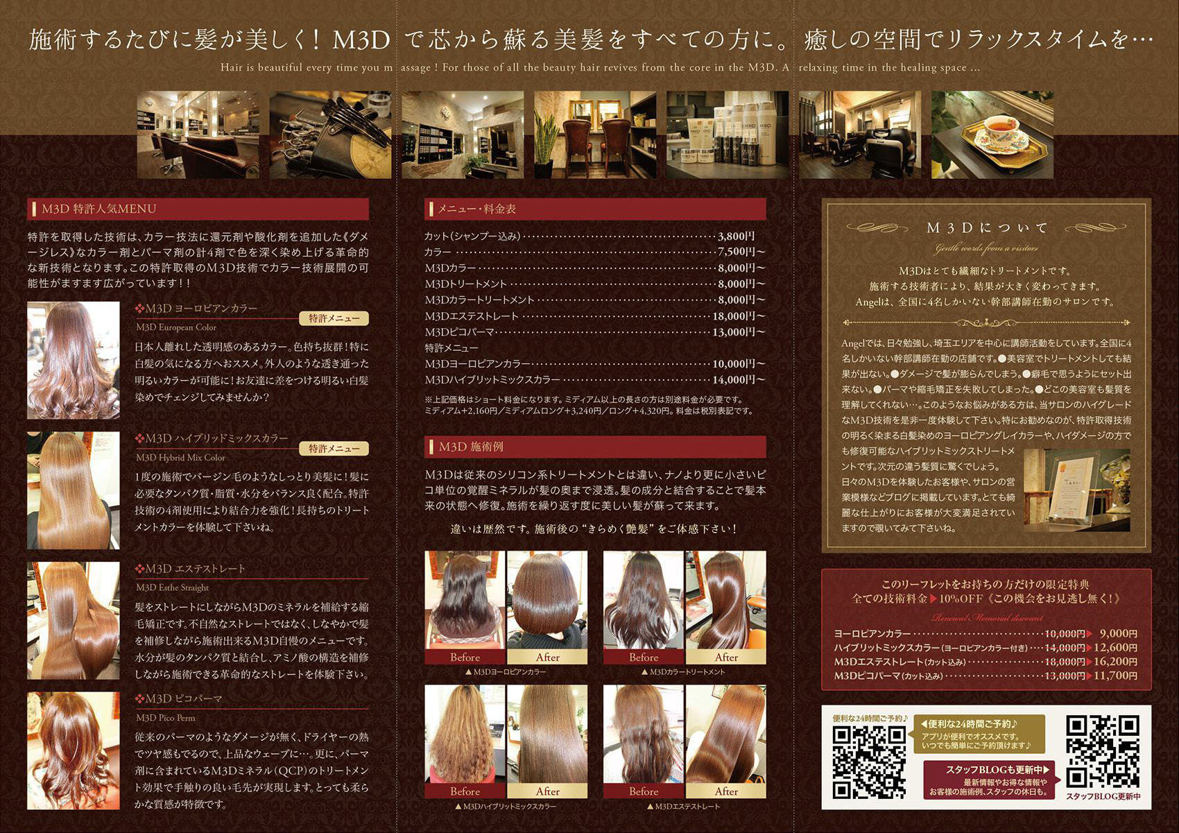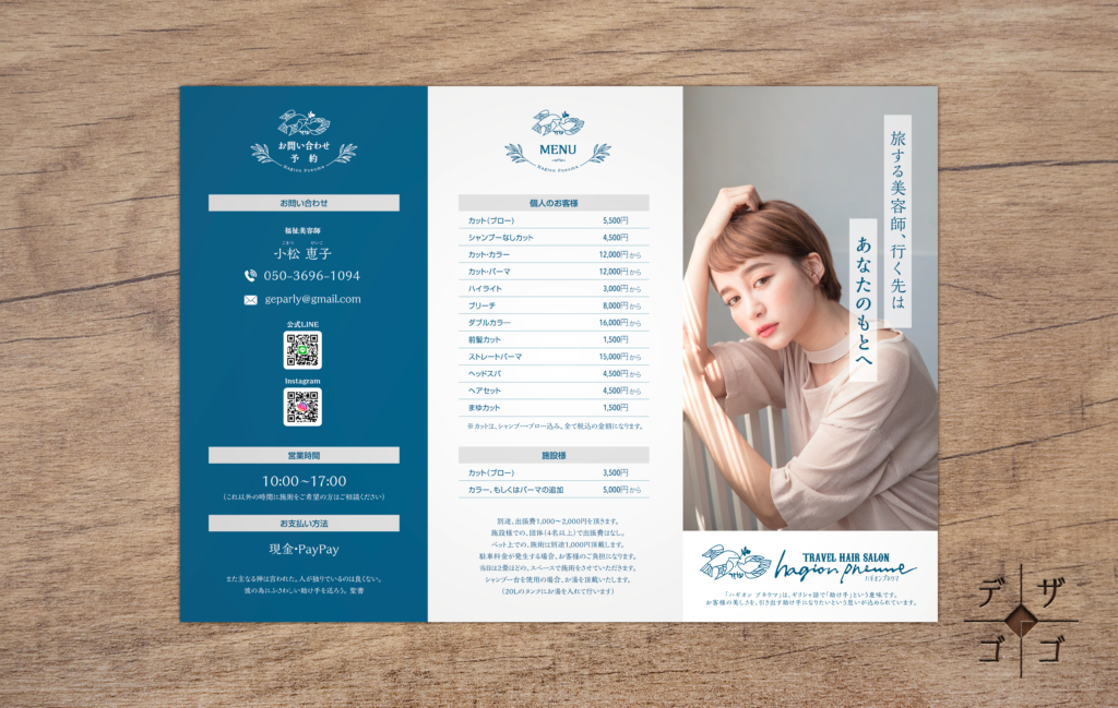 リーフレット 折りパンフレット 制作事例・美容室『Angel』様GLORIA design Inc. グロリアデザイン。