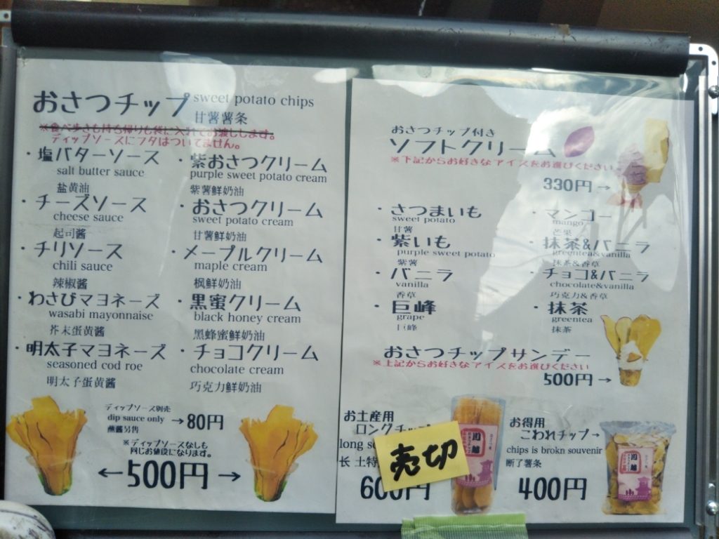 川越名物 小江戸おさつ庵 おさつチップのメニュー・値段を紹介食べて埼玉。