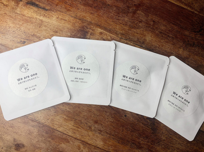 We are one. お茶で安らぎをまわそう。」ロゴマークを描きましたまんぷく食堂。