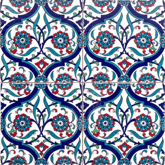 イズニックタイル トルコの壁タイル、1セットに12枚の模様タイル 20 cm x 20 cm - 0.48m2 - Timur - Etsy 日本。