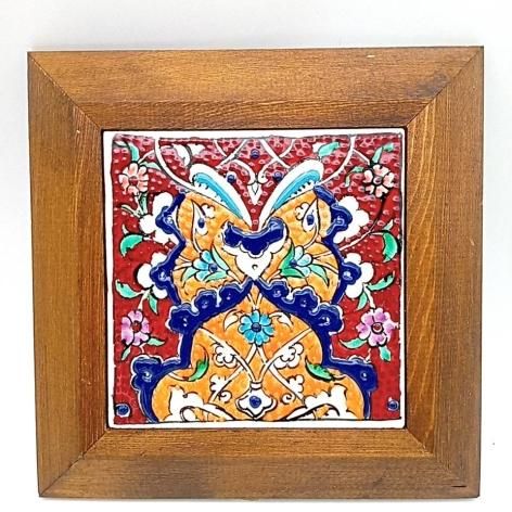 セール品 トルコ雑貨 トルコタイル トルコ 雑貨 手描き タイル フレーム フレーム入り手描きトルコタイル 15%OFF トルコ手書きタイルH15×W15×D1cm 磁器の陶板 セルジュークデザインガラタバザール。