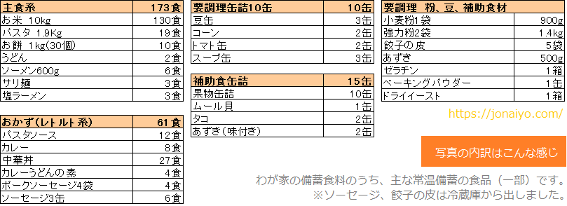 ローリングストック実例 わが家の備蓄食料を公開します!渡り鳥の暮らし。