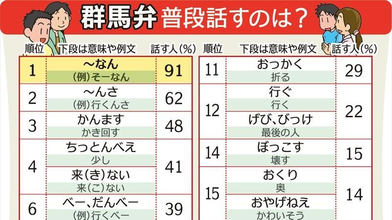よく話す群馬の方言ランキング、県民が選んだ1位は? 「ぼっこす」「かんます」「ちっとんべえ」も群馬弁 アンケート調査結果生活情報ページJOMOtto じょもっと上毛新聞電子版群馬県のニュース・スポーツ情報。