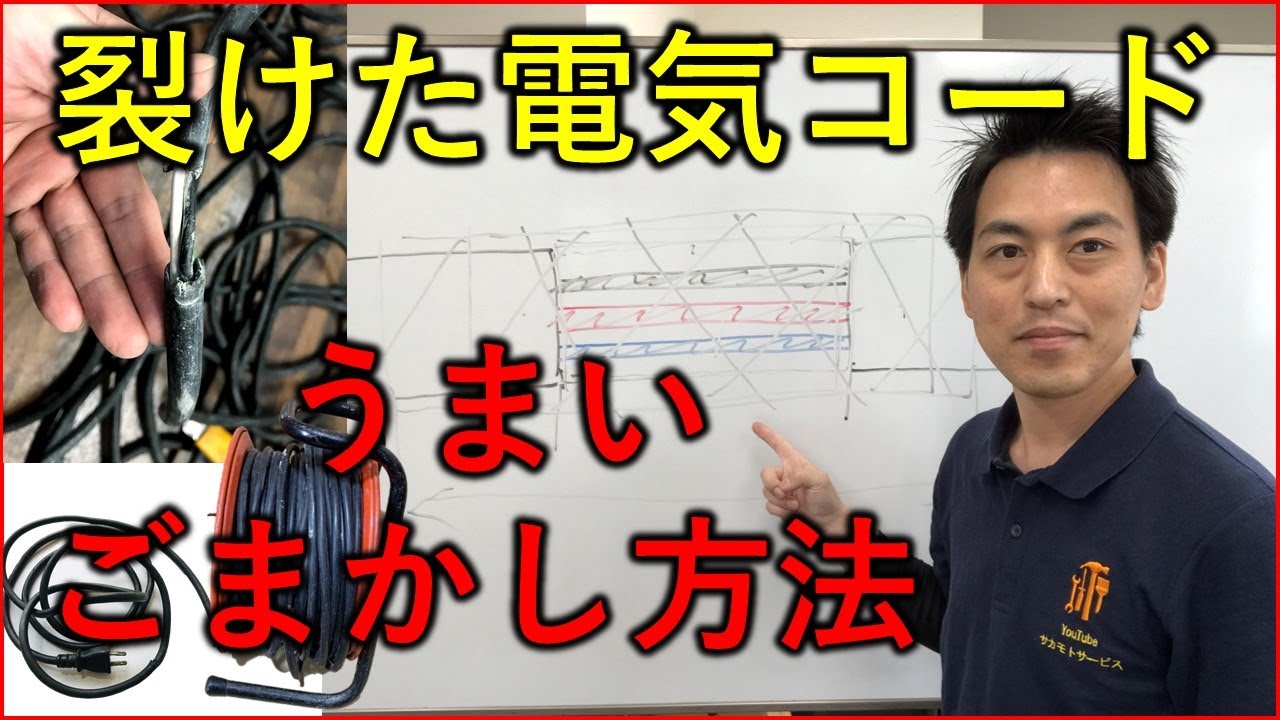 電気コードの皮がむけたらごまかす方法☆誰でもかんたんに絶縁テープを巻いてキャプタイヤコードを直す方法。