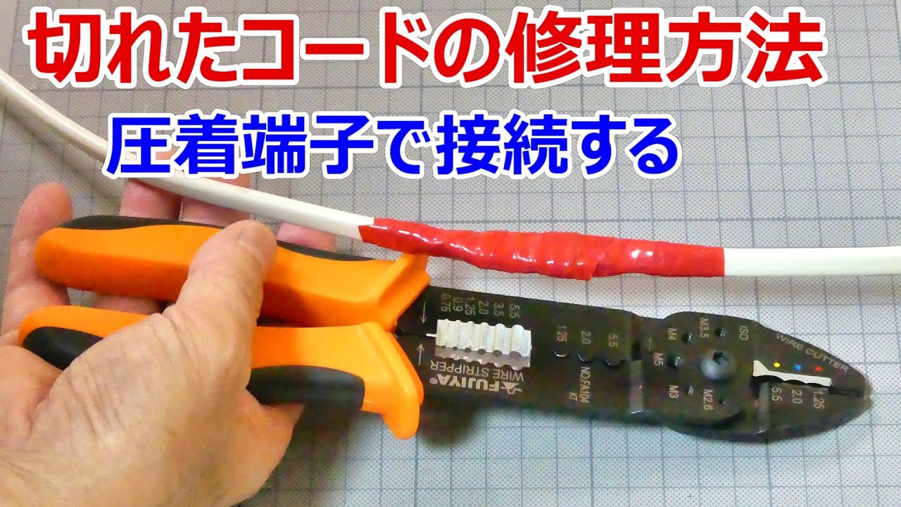 コードの断線修理 切れたコード・切れた配線圧着端子 - YouTube。