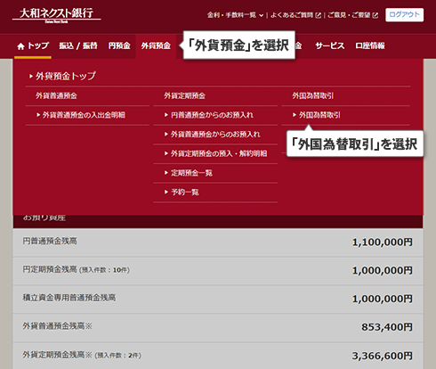 円普通預金から外貨普通預金のお申し込み外国為替取引- ご利用ガイド大和ネクスト銀行。