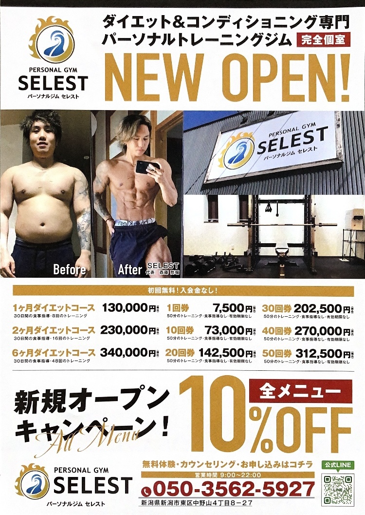 NEW OPEN ダイエット&コンディショニング専門 パーソナルトレーングジム!新潟市のチラシ集客はポスティングのアドポス。