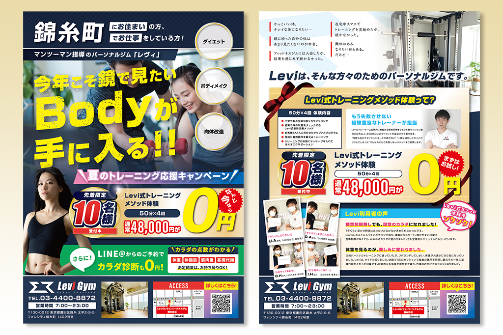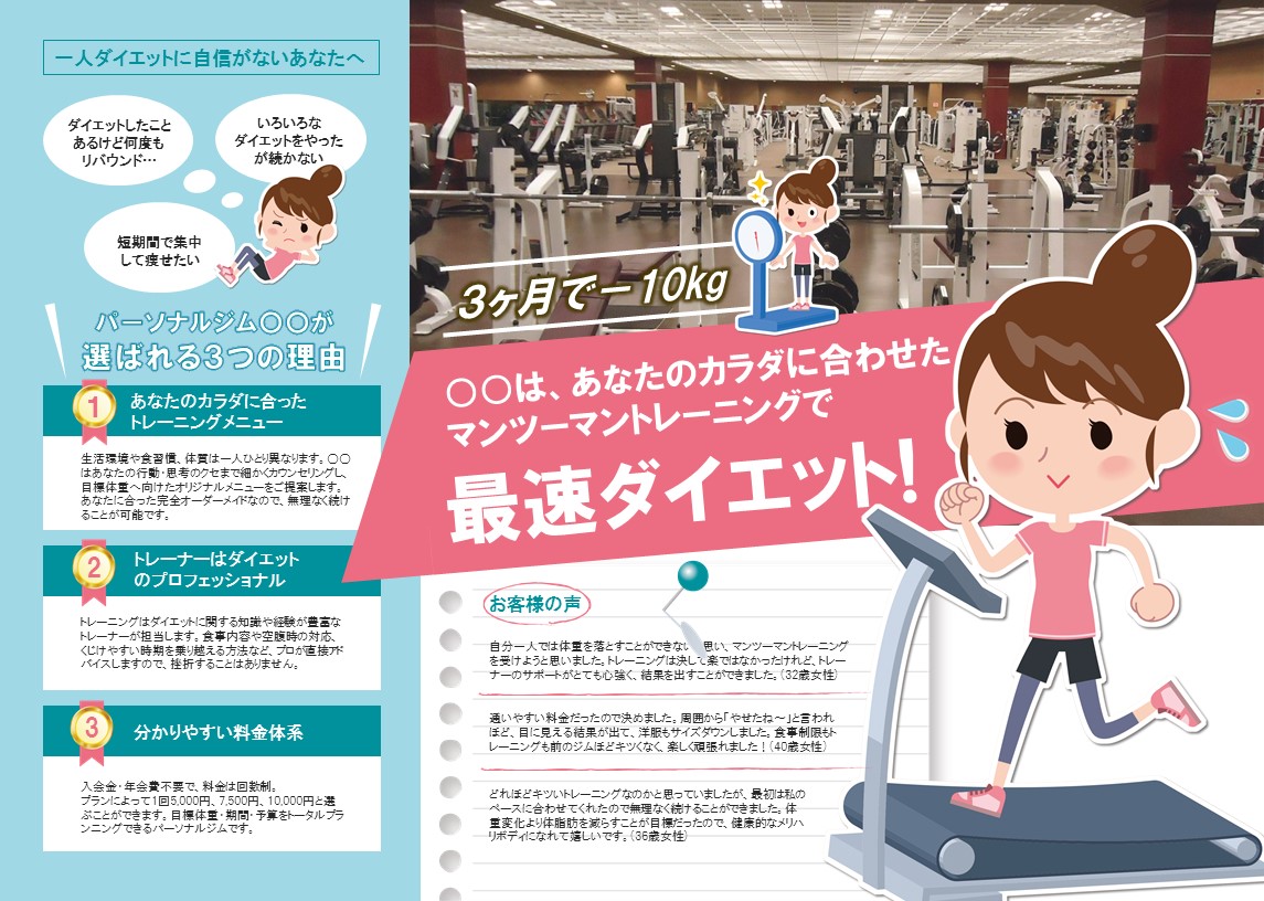 パーソナルトレーニング・フィットネスのチラシデザイン - I.G.WORKSチラシ・パンフレットのデザイン制作。