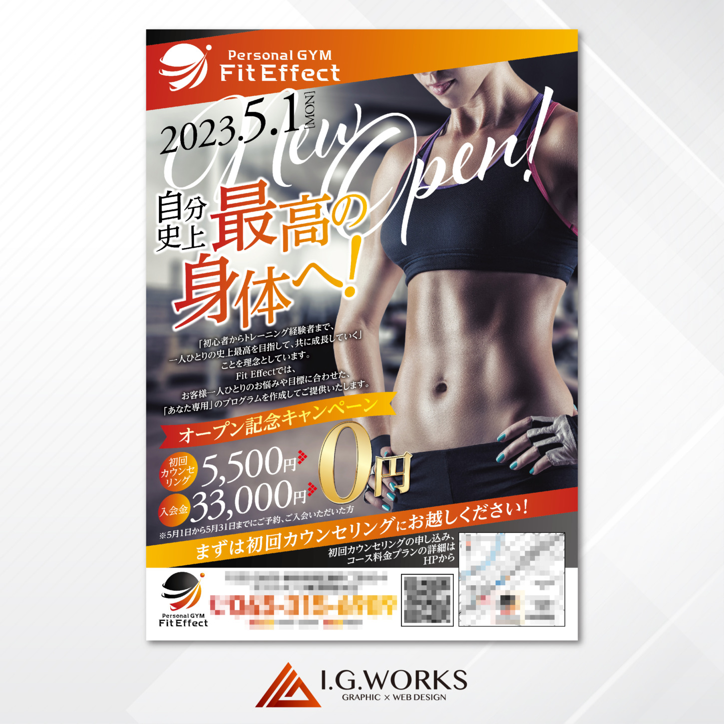 パーソナルトレーニングジムのチラシ作品例 – I.G.WORKS Portfolio。