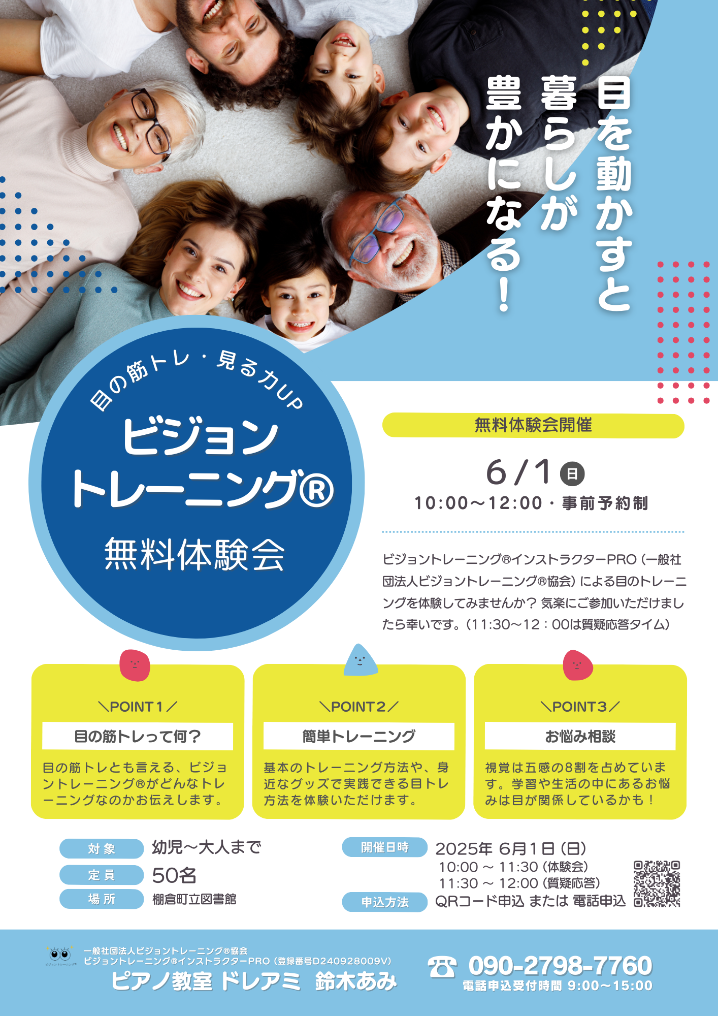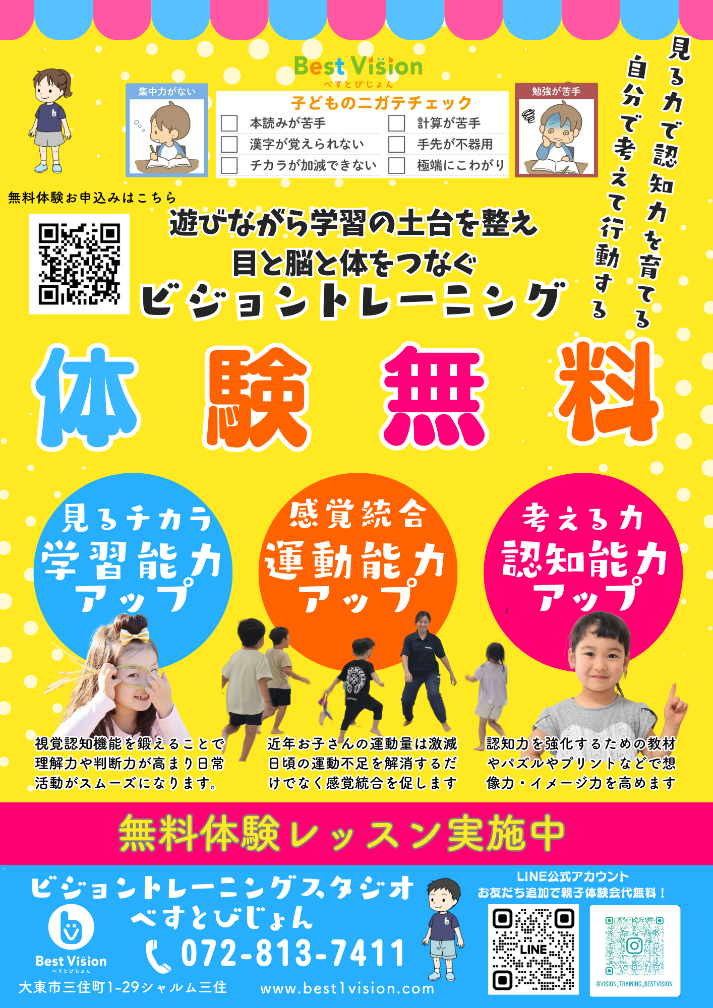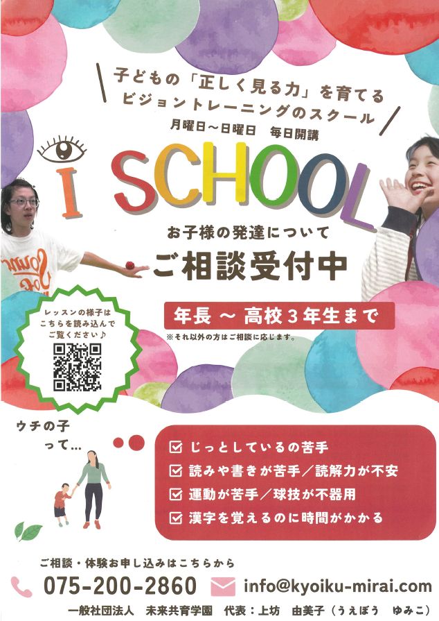 📣 新教室オープン!子どもの「見るチカラ」を育てる✨ \ビジョントレーニング教室 無料体験会読み書きや運動、集中力にお悩みありませんか?それ、「目の使い方」が原因かもしれません👀 ビジョントレーニングでは、「見る→わかる→動く」の力を育てます。