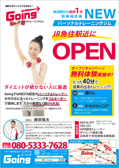 パーソナルトレーニングジムのOPENチラシを作成しましたアリキヌ:チラシ制作部。