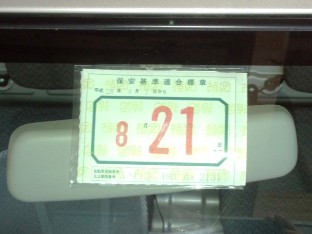 車検ステッカーの貼り付け位置、運転席側へ フロントガラスの右上に移動ツギノジダイ。