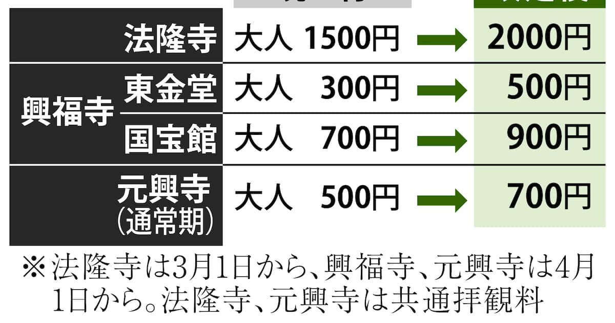 法隆寺500円、興福寺200円 苦渋の拝観料値上げ 世界遺産維持にもコスト増の波 - 産経ニュース。