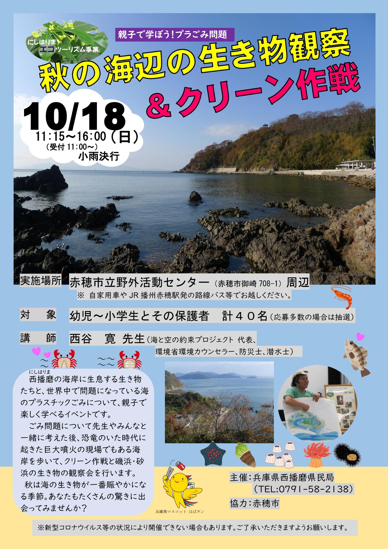 兵庫県 赤穂海ゴミ実験室と磯の生き物ウォッチング。
