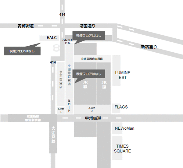 新宿駅一服できない場所とできる場所 商業施設とカフェの喫煙所。