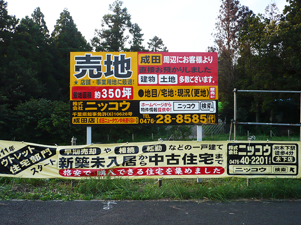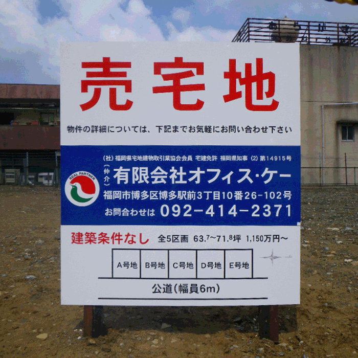 簡易売地サイン設置事例 - 建築・不動産業、不動産仲介業、賃貸管理業、ディベロッパー向け・募集看板 ・のぼり販売の専門店 GO!GO!不動産 ゴー!ゴー!フドウサンのブログ建築・不動産業、不動産仲介業、賃貸管理業、ディベロッパー向け・募集看板・のぼり販売の。