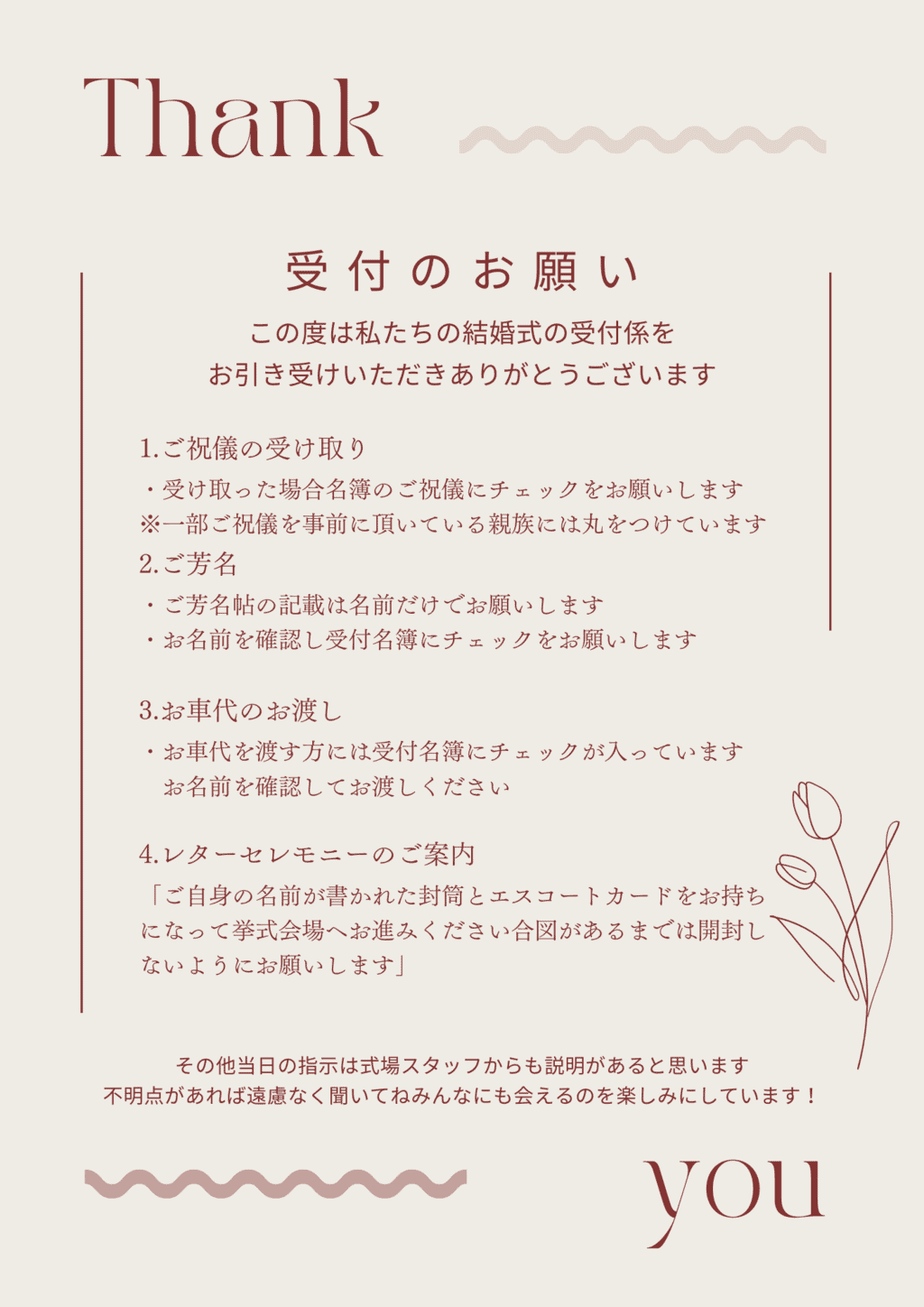 受付お願い書 結婚式無料テンプレートデザイン。イラストや画像付きも豊富 - Canva キャンバ。