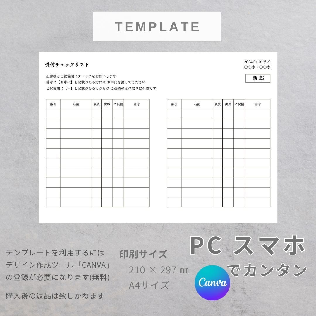 受付お願い書◈チェックリスト◈芳名帳セットスマホ✕CANVA- HONNOminne byGMOペパボ国内最大級のハンドメイド・手作り通販サイト。