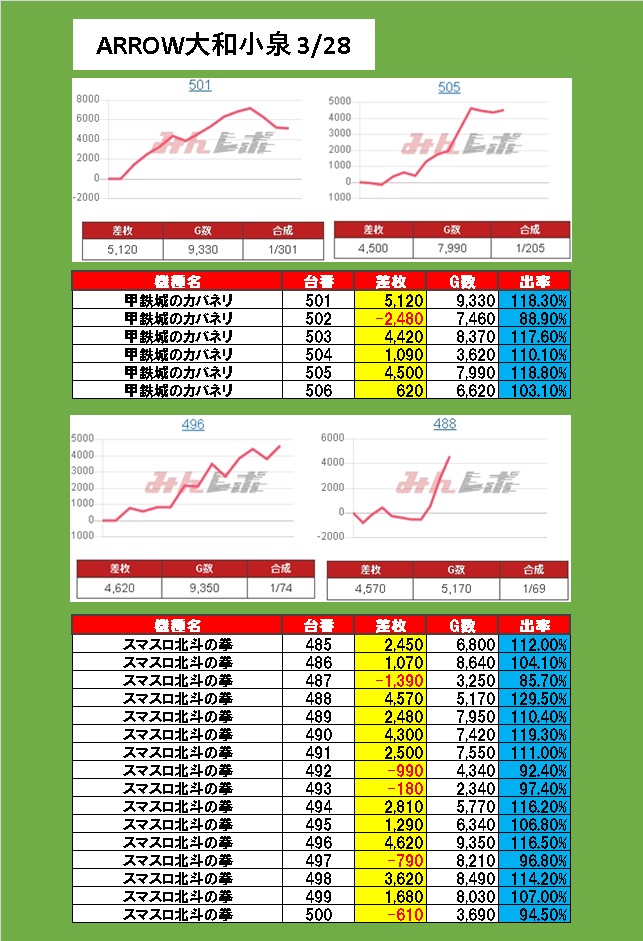 A-11☆アロー ARROW大和小泉店 データ一覧スロット差枚データ詳細 –。