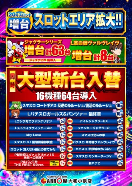 ARROW 大和小泉店イベント一覧・出玉データまとめ。