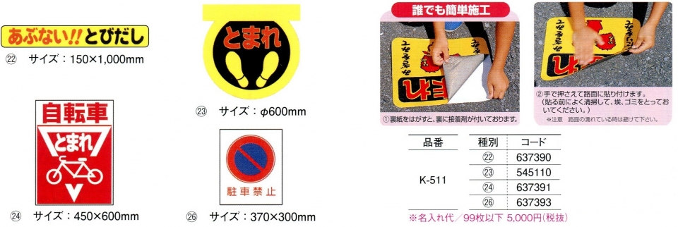送料無料 路面標識板 路面標示サインマーク 選べる3種類 テープ付 とまれ 自転車安全標識 工事・作業看板標識・看板,路面・駐車場安全保護用品のトランスタイル-transtyle。