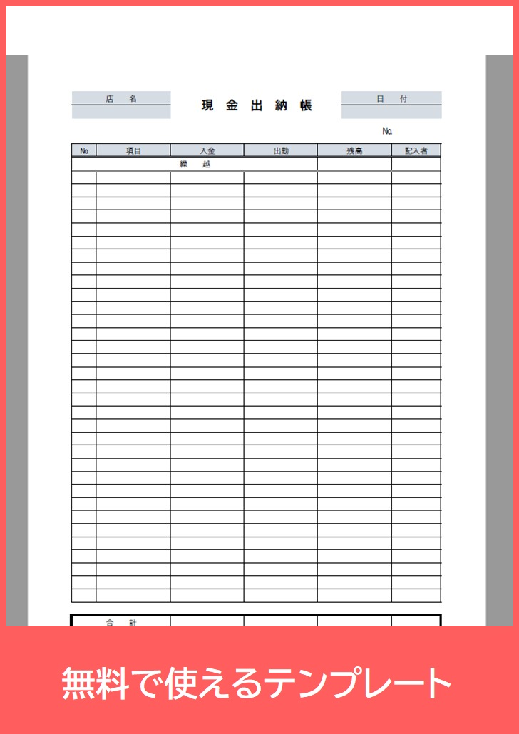 現金出納帳の無料テンプレート素材・word・Excel・pdf📑無料ダウンロード!テンプレルン📑無料ダウンロード!テンプレルン。