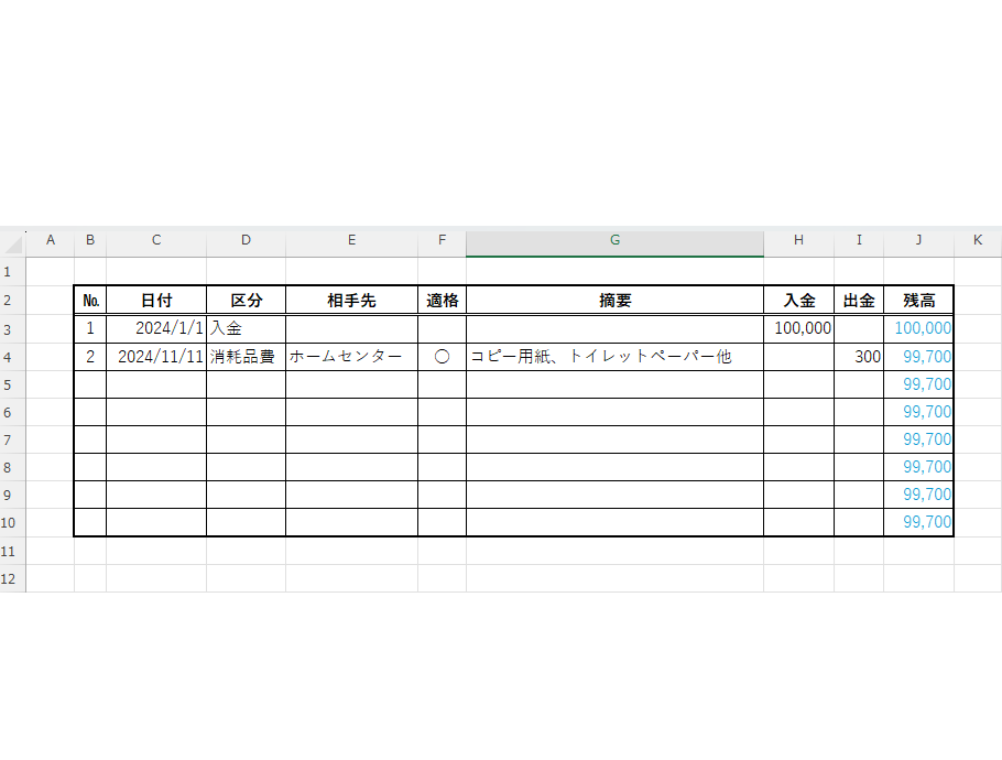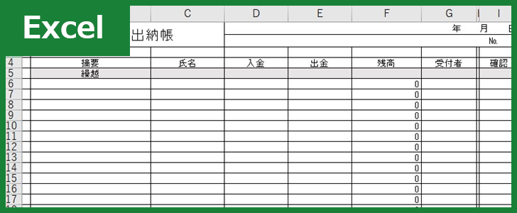 初心者にも優しい現金出納帳のテンプレート「エクセル」:イラスト無料。