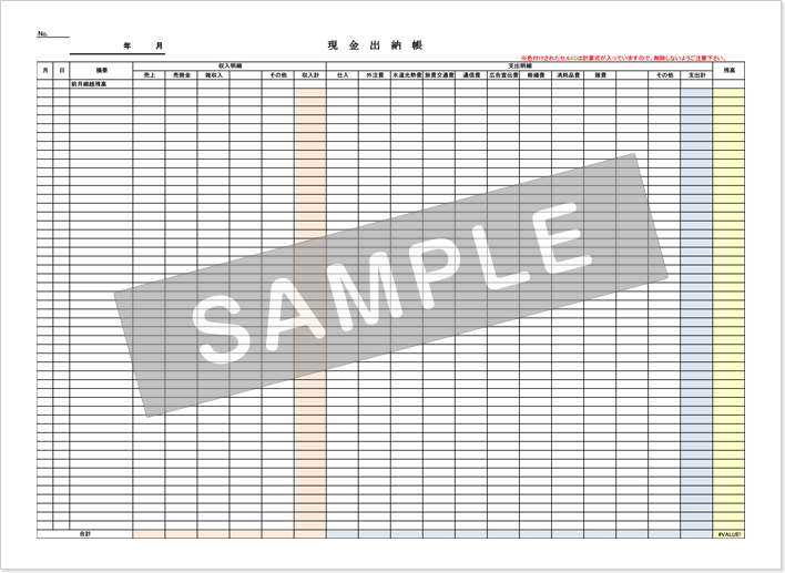 無料テンプレートダウンロード - 現金出納帳テンプレート。