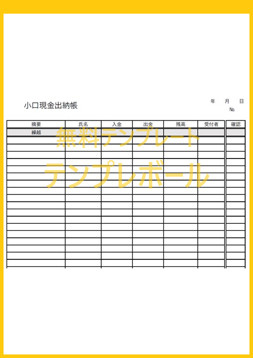 手書きにも!小口現金出納帳「エクセル」の無料テンプレート📑無料ダウンロード!テンプレルン📑無料ダウンロード!テンプレルン。