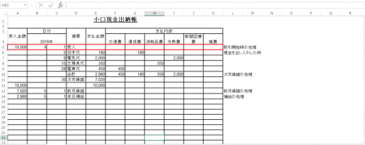 エクセル小口現金出納帳テンプレート - エクセルフリー 無料ダウンロード。