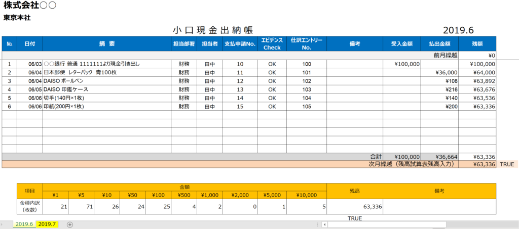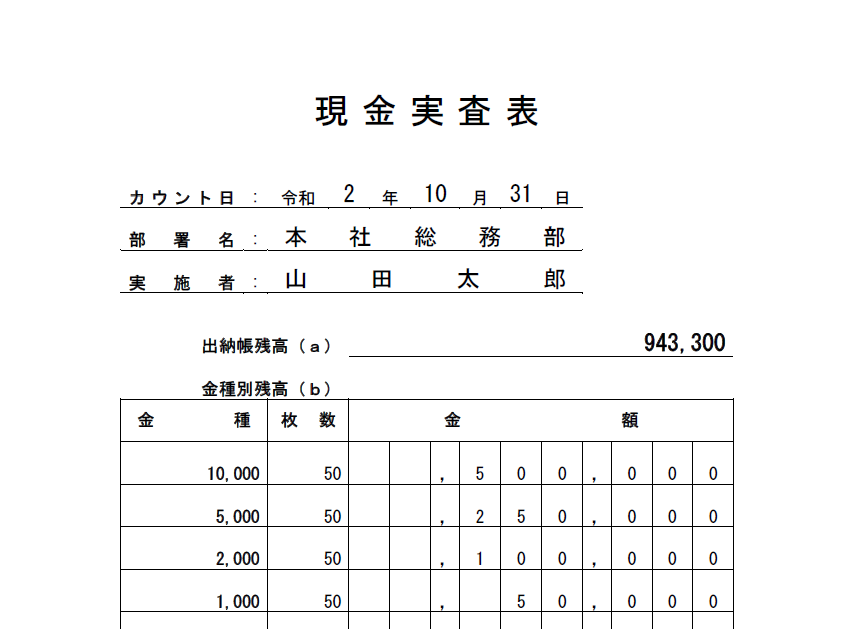 小口現金管理方法~現金出納帳との整合管理、金種表作成例~総務経理マスタ。